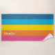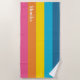 Erstellen Sie Ihre eigenen klassischen sommergestreiften Strandhandtücher in Rosa, Gelb, Blau und Orange für eine Brautjungfrau. Dies wird perfekt als persönliches Geschenk für den Sommer.