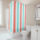 Summer Coral Turquoise White Vertical Stripes Duschvorhang