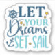 Segelsport Summer Vibe, Lass Deine Träume Set Segeln. Legen Sie den Aufkleber auf einen Laptop, ein Notebook, einen Spiegel, ein Telefon, eine Wasserflasche, eine Zeitschrift, ein Fahrzeugfenster, cooler oder eine glatte Oberfläche.
