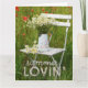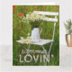 Adorable und bearbeitbare Grußkarte Design mit schönen Sommer Motiv. Der Sessel aus weißem Holz ist im Sommer mit einer Vase mit weißen Kamillenvasen versehen. Pfeffer um den Stuhl herum. Viel Spaß! © Fotografie von UtART 2017