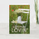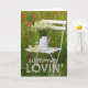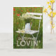 Adorable und bearbeitbare Grußkarte Design mit schönen Sommer Motiv. Der Sessel aus weißem Holz ist im Sommer mit einer Vase mit weißen Kamillenvasen versehen. Pfeffer um den Stuhl herum. Viel Spaß! © Fotografie von UtART 2017