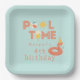 flamingo pool float. beach ball. sun. popsicle. modern. fun. cute. modern. birthday party. pool party. summertime. pool time. personalized birthday paper plates. party paper products.