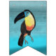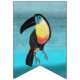Karo diese niedlichen Sommer Fun Pool Party Tropische Jagdfahnen mit tropischen Toucans. Diese bunten Fahnen zeigen Briefe von Happy Birthday in der passenden blauen Farbe des Themas eines Party mit blauem Wasser.