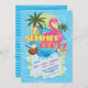 Summer Pool Party Einladung mit Flamingo Schwimmbad Schwimmbad und Beach Ball.