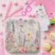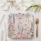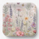 Hübsche Teller mit elegantem Aquarellbild eines hübschen Wildblume-Gartens im Frühling in Rosa, lila, Gelb und Lavendel. Es gibt mehrere winzige Schmetterlinge.