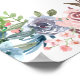 Die eleganten und fröhlichen, durchsichtigen Aquarelltöne in Rot, Gelb, Rost und leuchtend orangefarbenen und lebhaften Grüntönen erinnern an die Blüten des Sommergarten, wären aber zu jeder Jahreszeit perfekt für eine Hochzeit.