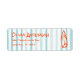 Wie Sie sehen, dieses einzigartige und elegante blaue und orangefarbene Baby an Bord Babydusche Rückkehr-Adresse Etikett hat eine gut konzipierte Vorlage. Mit orange handgezeichneter Surfbrett und handgeschriebener Name und Adresse in Orange. Alles auf hellblauen Streifen Hintergrund. Sie können diese einfach anpassen, indem Sie auf den Personalisieren-Button klicken.
