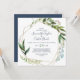 Dieses Sommer grün geometrische Platz Hochzeitseinladung ist perfekt für eine elegante Mitte Sommer Hochzeit. Das botanische Design besticht durch eine üppige Anordnung von gemalten Aquarelleukalyptusfarben, Grünpflanzen und grünen Blätter mit subtilen, rosa Blüten auf einem geometrischen Rahmen von Imitaten mit goldenen Rahmen.