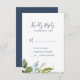 Die RSVP-Karte im Sommer ist ideal für eine elegante Hochzeit im Mittelsommer. Das botanische Design besticht durch eine üppige Anordnung von gemalten Aquarelleukalyptusfarben, Grünpflanzen und grünen Blätter mit subtilen Blumenzwiebeln in Rosa.