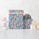 Ein fröhliches Sortiment an lebhaften Eis-Cremes ist auf einem hellblauen Hintergrund verstreut und zeigt Wirbel und Süßigkeiten