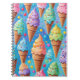 Ein fröhliches Sortiment an lebhaften Eis-Cremes ist auf einem hellblauen Hintergrund verstreut und zeigt Wirbel und Süßigkeiten