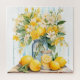 Lebhafte Blume eingebettet in einem Glas, umgeben von frischen Zitronen. Eine reizvolle Mischung aus Natur und Genuss.