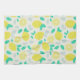 Ein trendiges Sommermuster aus hellgelben, vollen Zitronen und Zitronenschnitzeln, umgeben von aquamarinen und mintfarbenen Blätter. Dieses Zitrusfrüchtemuster eignet sich perfekt für sonnige Sommertage.