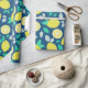 Ein trendiges Sommermuster aus hellgelben, vollen Zitronen und Zitronenschnitzeln, umgeben von aquamarinen und mintfarbenen Blätter und auf einem schönen marineblauen Hintergrund. Dieses Zitrusfrüchtemuster eignet sich perfekt für sonnige Sommertage.