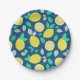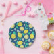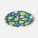 Ein trendiges Sommermuster aus hellgelben, vollen Zitronen und Zitronenschnitzeln, umgeben von aquamarinen und mintfarbenen Blätter und auf einem schönen marineblauen Hintergrund. Dieses Zitrusfrüchtemuster eignet sich perfekt für sonnige Sommertage.