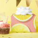 Ein Muster aus frischen und saftigen Zitronenschnitzen in lebhaften, lebhaften Gelbtönen, mit einer Aquarellstruktur, die ihm ein frisch geschnittenes Aussehen verleiht. Sie sind auf einem lachsfarbenen Hintergrund platziert, um einen hellen und sommerlichen Look zu erhalten, wie eine rosa Limonade.