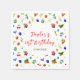 This beautiful and elegant napkin features watercolor blueberries, strawberries, redberries and foliage. The text combines handwritten script and serif fonts for a stylish and modern look. This is perfect for a spring or summer rustic birthday party.