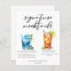 Diese elegante Signatur-Mocktails-Menüvorlage beinhaltet eine einfache schwarze Typografie über 2 niedlichen Drinks und deren Zutaten für Ihre Hochzeitsfeier Bar. Ein Blue Hawaiian Sunrise Drink und ein alkoholfreies Arnold Palmer Drink ergänzen Ihr Bar mit einem coolen Flair. Füllen Sie bitte die Namen des Paares und das Datum für seinen Empfang aus.