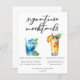 Diese elegante Signatur-Mocktails-Menüvorlage beinhaltet eine einfache schwarze Typografie über 2 niedlichen Drinks und deren Zutaten für Ihre Hochzeitsfeier Bar. Ein Blue Hawaiian Sunrise Drink und nicht-alkoholische Jungfrau Piña Colada fügen einen coolen Flair zu Ihrem Bar Menü. Füllen Sie bitte die Namen des Paares und das Datum für seinen Empfang aus.