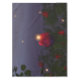 In der Dämmerung einer Sommernacht schweben Glühwürmchen und glühen über einen Rose-Garten voller lebendiger rote Rosen.