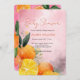 Invite your guests to your baby shower with this orange citrus fruits Baby Shower invitation with watercolor oranges foilage and a patterned background. Perfect for any summer event!