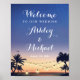 Summer Palm Tree Beach String Lights Wedding Sign Poster