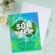 Summer Club Party Flyer bietet Aquamarine grün & blau Palmenbaumhintergründe, botanische grüne Blätter, Elfenbein Florals & geometrische Formen. Passen Sie auf Ihre Wünsche an.