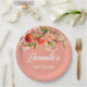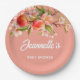 Enhance your table setting with these Sweet Peach Orchard baby shower paper plates. The design features lush watercolor peaches and pink blossoms set against a warm coral background. These plates are perfect for guests attending a fruit-themed tableware decor.