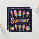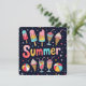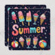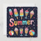 Bright and colorful popsicles, ice cream cones, and refreshing drinks are arranged around the word "Summer," creating a lively and festive atmosphere.