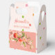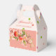 Celebrate a new arrival with these charming summer orchard favor boxes. This design features vibrant watercolor peaches and delicate pink blossoms set against a soft pastel pink background. These are the perfect choice for guests at a "Sweet Little Peach" themed baby shower.