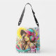 Mit dieser lebendigen, kunstvollen Crossbody-Tasche verleihen Sie Ihrem Aussehen einen kühlen Hauch von Persönlichkeit. Das Design präsentiert eine spielerische Figur im Stil eines Cartoon, umgeben von sanften Wackeln und farbigen Tropfen - wie tragbare Straßenkunst in Bewegung. Mit dynamischen Rosa-, aquamarin- und Gelbtönen und einem leuchtend gelben Sonnensymbol im Hintergrund bringt diese Tasche sofortige Energie zu jedem Outfit. Die zentrale Figur blinkt ein klassisches Friedenszeichen und kanalisiert Vintage Farbtupfer, während florale Akzente im Tattoostil auf ihren Armen eine rebellische, kreative Drehung verleihen. In einer Pop-Kunst/Grafik-Ästhetik entworfen, ist es das perfekte Statement-Accessoire für Liebhaber von kühnem Design und Retro-Flair. Diese kompakte und dennoch funktionelle Tasche eignet sich ideal für Feste, Stadttage oder wann immer Sie gewollt haben, um stilvolle und Freispiele behalten.