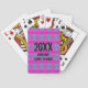 Erhalten Sie Stunden Unterhaltung für alle Altersgruppen auf Ihrer nächsten Wiedersehen. Dieses lebendige, in Krawatte-Farbtönen gehaltene Kartenspiel zeichnet sich durch ein neonfarbenes Rosa- und Blau-Muster aus, zusammen mit Ihrem Familiennamen und dem Jahr.