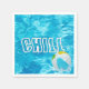 "Chillout"-Text in Wavy-Schriftart-Effekt für Schwimmbad Party mit dem Plätschern der Beachball in türkisfarbenem Wasser des Pools.