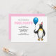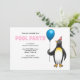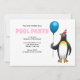 Einladung zum Party im Sommer zum Geburtstag. Es ist für Kinder geeignet und hat eine lustige Veranschaulichung mit einem Pinguin, der für das Party bereit ist.