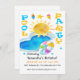 Machen Sie sich mit einem Gender-Neutral-Pool-Party fertig, das sicher ein Hit ist! Diese bezaubernde Einladung lädt mit einer lächelnden Sonne, einem Schlauch und einem Swimmingpool zum Vergnügen ein.