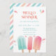 Feiern Sie den Sommer mit dieser niedlichen und farbenfrohen Einladung mit pastellfarbenen Popsikeln.