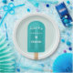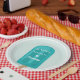 Diese niedlichen, personalisierten Teller sind so konzipiert, dass sie den Einladungen unserer beliebten Kinder zur Geburtstagsfeier entsprechen. Sie zeichnen sich durch einen hellen aquamarinen Popsikel in der Mitte aus, der mit einem weißen Retro-Schriftzug mit dem Motto "Happy Birthday [Name]" geschmückt ist.