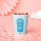 Diese niedlichen personalisierten Papiertassen, die auf die Einladungen unserer beliebten Kinder zur Geburtstagsparty abgestimmt sind, zeichnen sich durch einen hellblauen Popsikel aus, der mit dem Wort "Happy Birthday [Name]" in einem weißen, herzgeschmückten Retro-Buchstaben verziert ist.