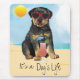 Es ist das Leben eines Hundes! Seien Sie cool und feiern Sie die Sommertage mit diesem niedlichen Rottweiler mit einer Sonnenbrille und entspannen Sie bei einem Drink.