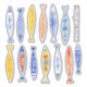 Farbenfrohe Fische in Blau, Orange und Gelb. Inspiriert von mediterranen Sardinen und skandinavischem Design, sind diese der perfekte Pop für jeden Ihrer Lieblingsgerüste oder Schreibwaren. 13 einzelne Fischkleber auf einem Blatt. Handgemalt von Heidi Horchler.