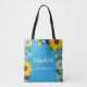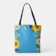 Sommerblauer Himmel mit goldgelben Sonnenblumen, Gänseblumen und verschiedenen Wildblumen mit botanischer Vegetation
