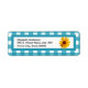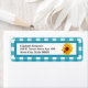 Niedliche blaue Gingham-Rücksendeadressen-Aufkleber mit einer hellen und fröhlich-gelben Sonnenblume mit einem niedlichen gepunkteten Ladybug, der auf den Blütenblättern sitzt. Persönlich gestalten, indem Sie Ihren Namen und Ihre Adresse in dieses Landhausstil-Design stellen sicher, dass Ihre Empfänger in eine glückliche Sommerzeit Stimmung!