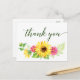 Dieses Sommer Sonnenblumen danke Ihnen Postcard ist perfekt für eine Frühlings- oder Sommerhochzeit. Die Einrichtung besteht aus einem Blumenkranz mit hellgelben Sonnenblumen und rosa Gerbera-Blume. Personalisieren Sie die Postkarte mit Ihren Namen und Rücksendeadresse.