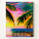 Unwind and let your worries fade away with this soothing painting depicting a serene background sunset adorned with soft hues of pink, subdued orange, and gentle yellow. The calming presence of the sea and the swaying palm trees, captured in a delightful retro style, adds a touch of nostalgia and tranquility. This artwork is an ideal gift for those romantic dreamers who seek solace in the beauty of the world. Embrace the peaceful vibes and let this enchanting piece transport you to a state of pure relaxation.