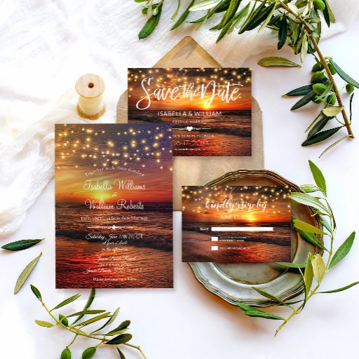 Summer Sunset String Light Beach Probe Dinner Einladung