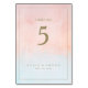 Die Tischnummer ist ideal für einen tropischen Strand mit Hochzeitsfeiern. Entworfen mit minimalistischer, orange-pfirsichfarbener Koralle und staubblauer Wasserfarbe, begleitet von einer einfachen rustikalen Goldtypografie aus Sand. Es wird sicher Ihren modernen böhmischen Küsten-Hochzeiten in Urlaubsort entsprechen.