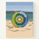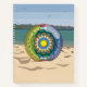 Dieses Strandmandala-Thema umfasst mehrere Muscheln, Segelboote, Sand, Sonne, Meer und Palmen in einem transparenten Beachball, um den Spaß, der mit dem Sommer kommt in Erinnerung zu bringen. Der Beach-Ball liegt im Sand vor einem Strand- und Meereshintergrund.