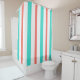 Summer Turquoise Coral White Vertical Stripes Duschvorhang