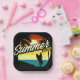Die Retro-Silhouette ist mit "Summer vibes"-Texten mit tropischen Sonnenuntergängen und weiblichen Surfer-Grafiken ausgestattet