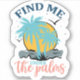 Summer Vibes Sticker, finde mich unter den Palmen. Das Design der Sommervibes ist in beruhigenden Farben gehalten. Legen Sie den Aufkleber auf einen Laptop, ein Notebook, einen Spiegel, ein Telefon, eine Wasserflasche, eine Zeitschrift, ein Fahrzeugfenster, cooler oder eine glatte Oberfläche.